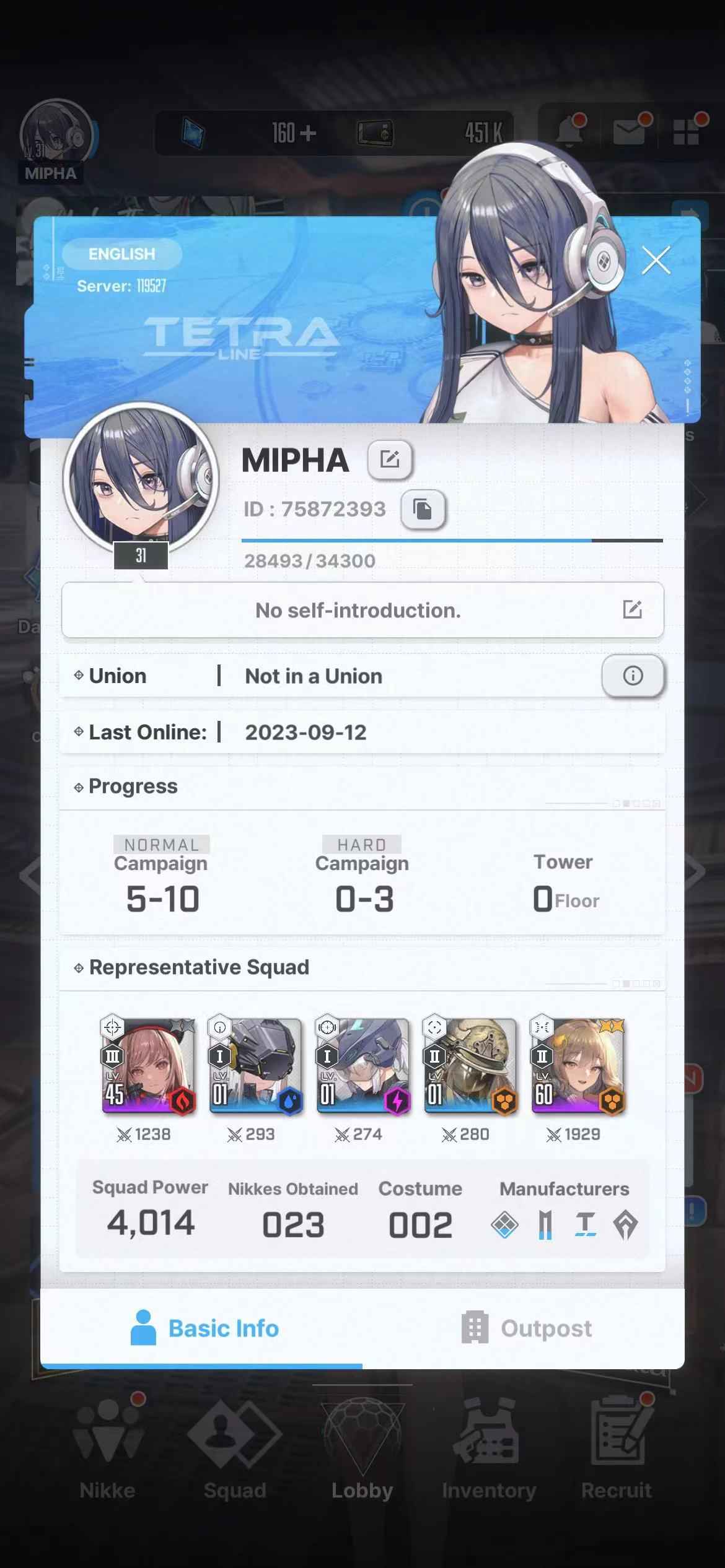 3. Будет отображен ваш идентификатор игрока GODDESS OF VICTORY: NIKKE и имя персонажа.