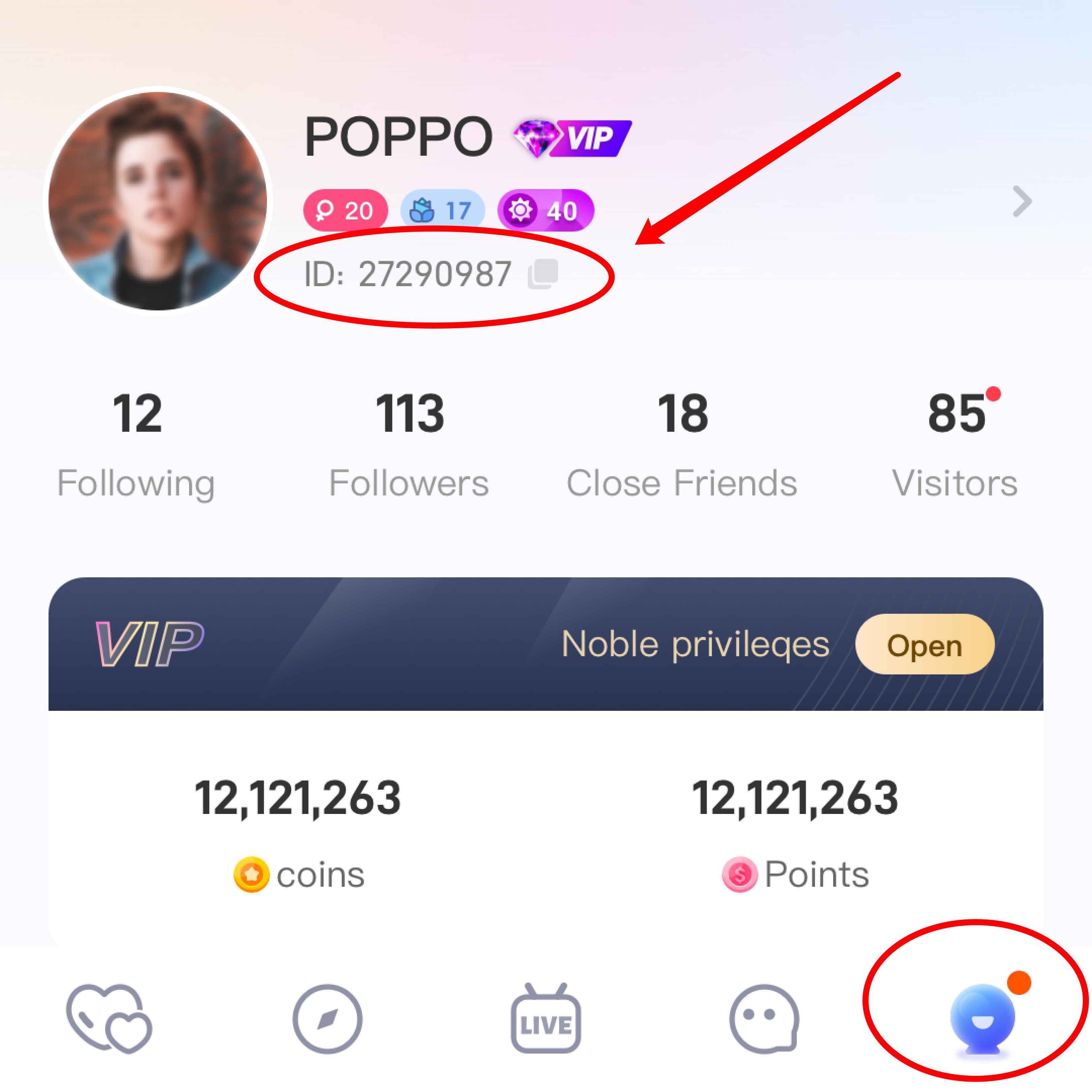 2. Введите ваш идентификатор пользователя Poppo Live.